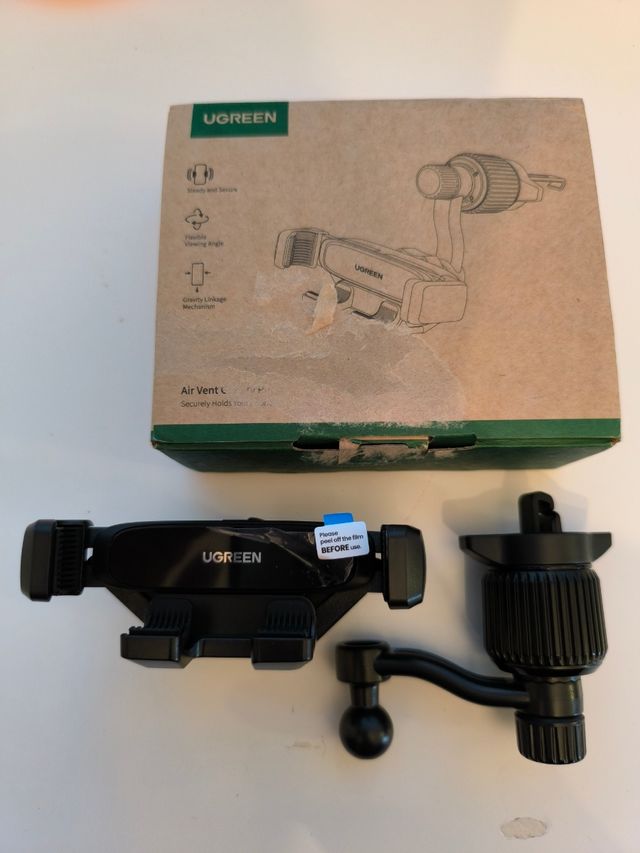 Detalles del productoSoporte para teléfono de coche UGREEN, soporte para teléfono de coche por gravedad para iPhone 15 14 13 Pro Max Xiaomi Samsung 360° Soporte para teléfono con ventilación de aire de rotación. "SIN ESTRENAR". REF: 008