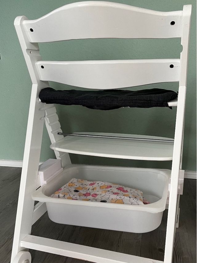 Detalles del productoSoporte de plástico blanco para adaptar una caja Trofast de Ikea a una trona Hauck.