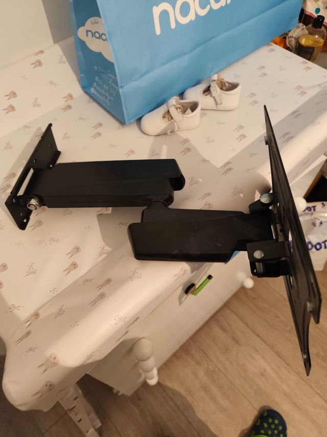 Soporte de pared para televisor, en perfecto estado. - Permite una inclinación y giro óptimos. - Diseño negro, elegante y discreto. - Fácil instalación.