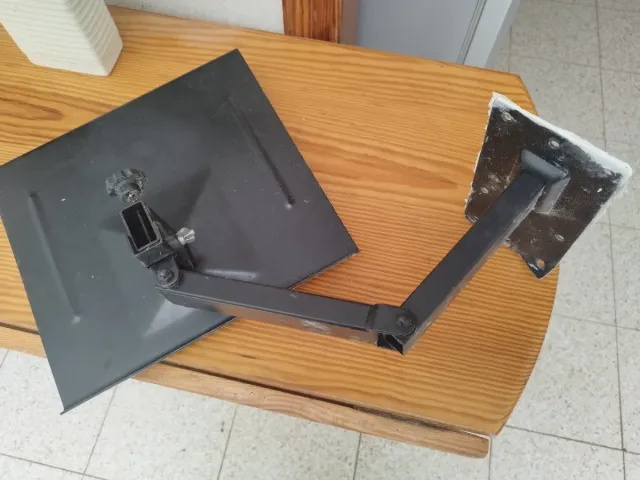 Soporte de pared para televisión con brazo articulado. - Fabricado en metal negro. - Base cuadrada para fijación a la pared. - Brazo extensible y orientable.