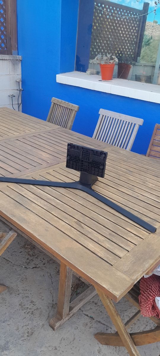 Soporte para televisores de gran tamaño. - Base negra. - Diseño de tres patas.