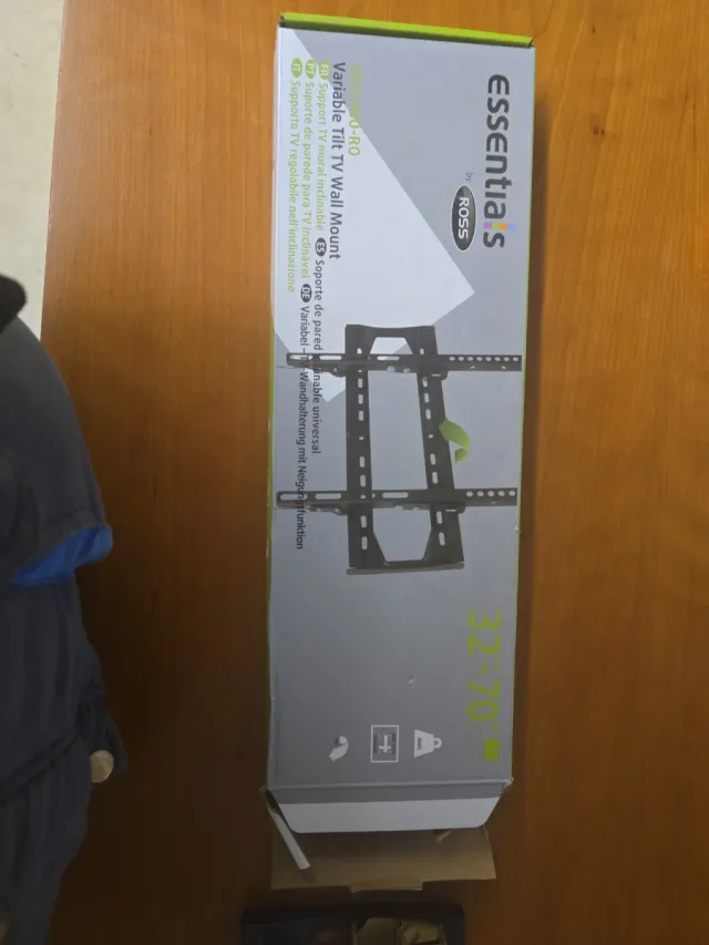 Soporte de pared para TV con función de inclinación. - Compatible con pantallas de 32 a 70 pulgadas. - Marca: Essentials by Ross.