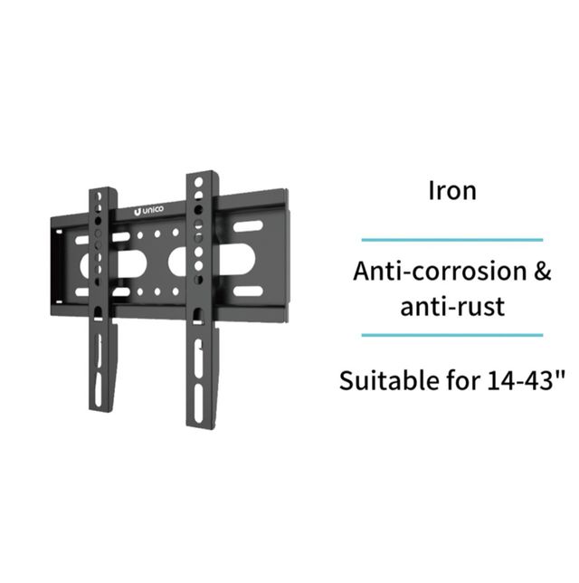Detalles del productoSoporte de pared para TV Unico, nuevo y en perfecto estado. Ideal para televisores de 14 a 43 pulgadas.