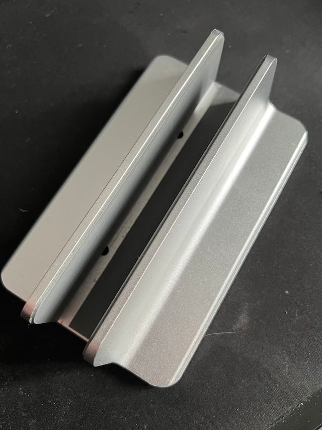 Soporte para colocar el portatil de manera vertical. Comprado en amazon. Funciona con una llave allen, simple de usar.
