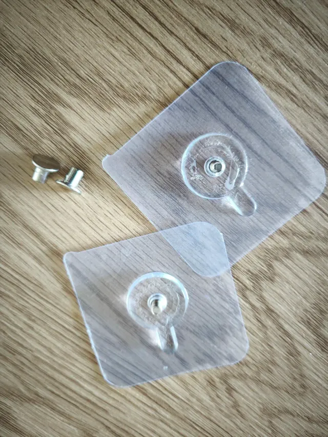 Detalles del productoVarios soportes adhesivos transparentes con gancho.
