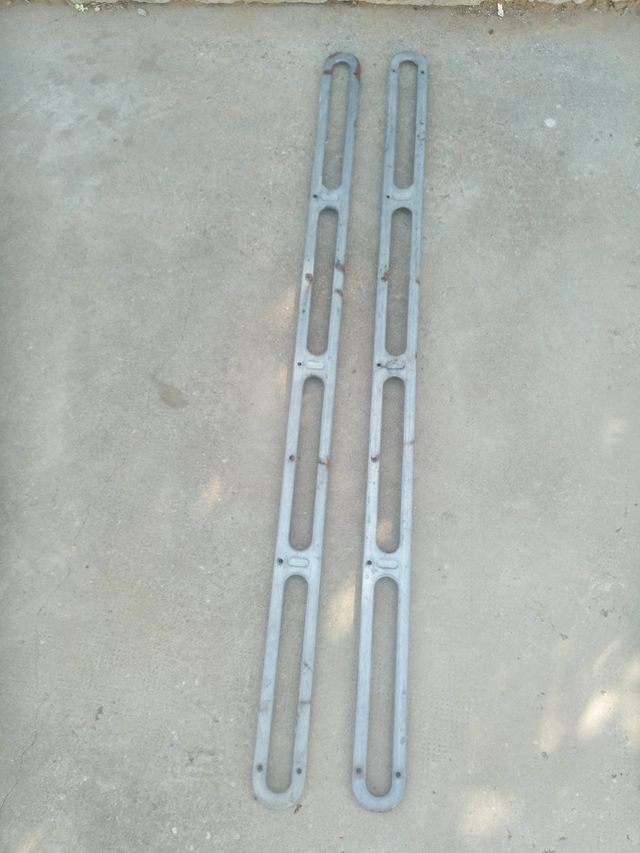 Detalles del productoSe venden dos soportes de baca para coche, de estilo vintage. Son de metal, de color gris y presentan un aspecto usado.