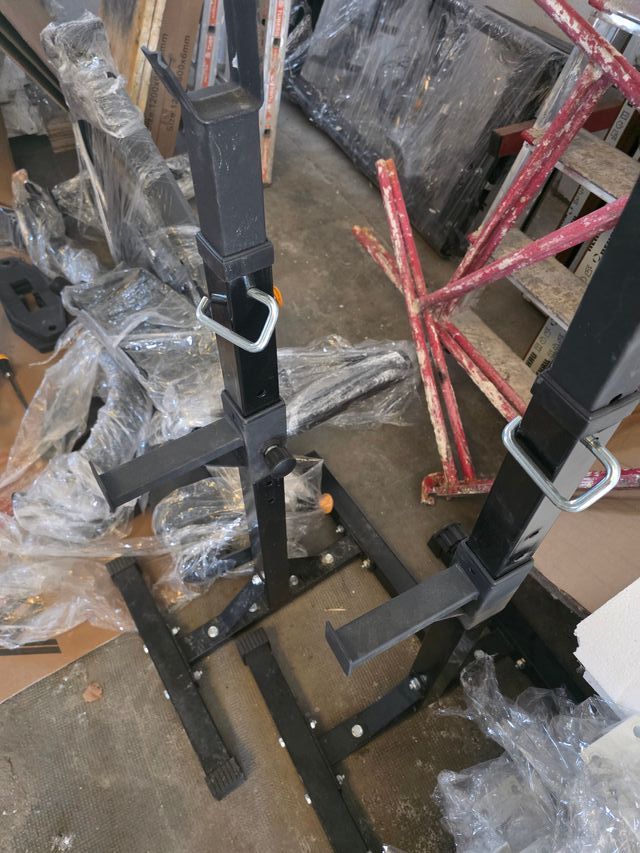Detalles del productoSe venden dos soportes para barra de pesas, ideales para tu gimnasio en casa. Están en buen estado, listos para usar.