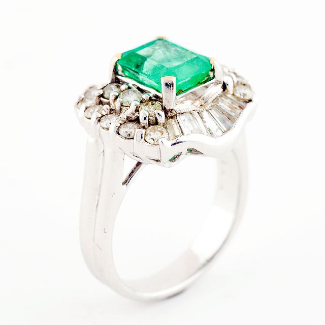 Sortija en Oro Blanco 18k con Esmeralda Colombiana