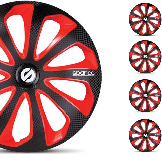 Sin usar-Solo hago envios Sparco Juego de 4 Tapacubos Sicilia 14 pulgadas Negro/Rojo/Carbonio