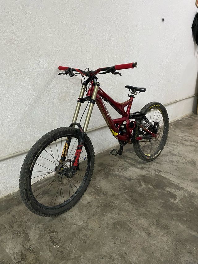 Bicicleta hecha para descenso, muy bien cuidada, se le hace mantenimento regularmente y se lava la bici tambien, tiene una horquilla rockshox boxxer, amortiguador traserl fox dhx5, ruedas de 26 y de 27 (no instaladas ahora mismo) manillar pro taper original, la bici es del año 2010 aun asi sigue estando en un estado decente, cubierta trasera con poco uso. La bici tiene frenos shimano instalados hace poco, la bici cuenta con un cambio shimano deore xt de 9 marchas. ( lo de las fotos no es oxido, es tierra ) NO ENVIO