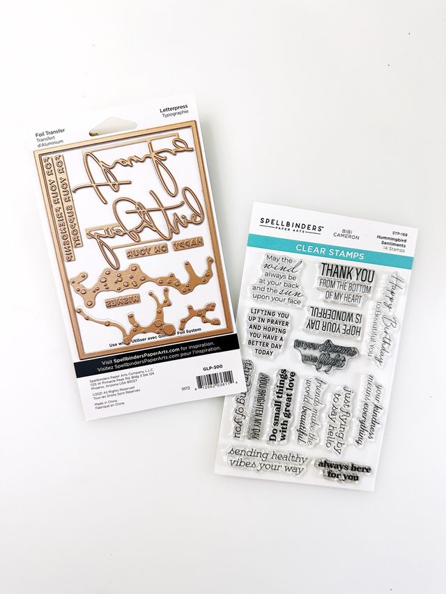 Detalles del productoSet de troqueles Spellbinders Glimmer Hot Foil Splatters y sellos Hummingbird sentiments de Bibi Cameron