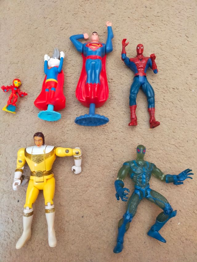 Varios muñecos de superhéroes pequeños,en perfecto estado. Articulados y los que tienen base se le elevan los brazos. Precio de 2€ y de 3€, unidad.