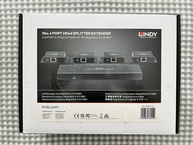 Detalles del productoExtensor divisor HDMI de 4 puertos de LINDY, con alcance de hasta 70 metros.