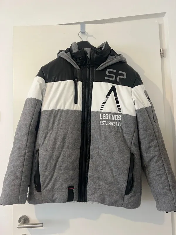 Chaqueta de invierno con diseño moderno y detalles llamativos.