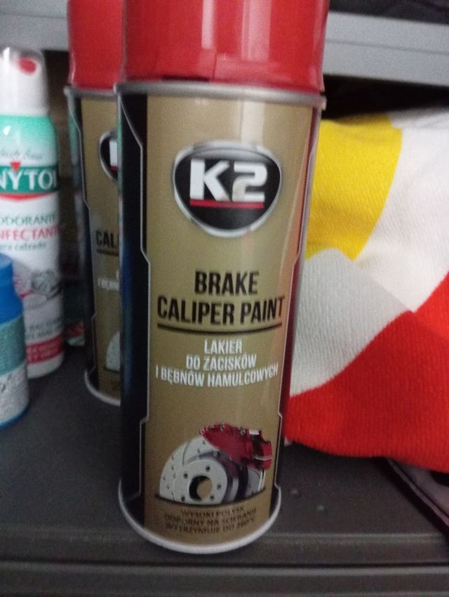 Detalles del productoSpray de pintura K2 rojo para embellecer y proteger las pinzas de frenos y tambores 11 cada bote (preferiblemente en mano no hago envios)