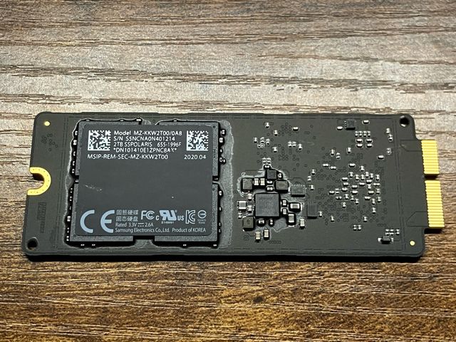 SSD NVMe original de Apple (OEM) con controlador Samsung SSPolaris de 2TB y connector proprietario (12 + 16 Pin). No necesita adaptador.