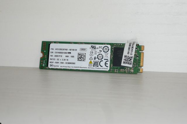 Detalles del productoDisco de estado sólido SK Hynix de 128GB en formato M.2.