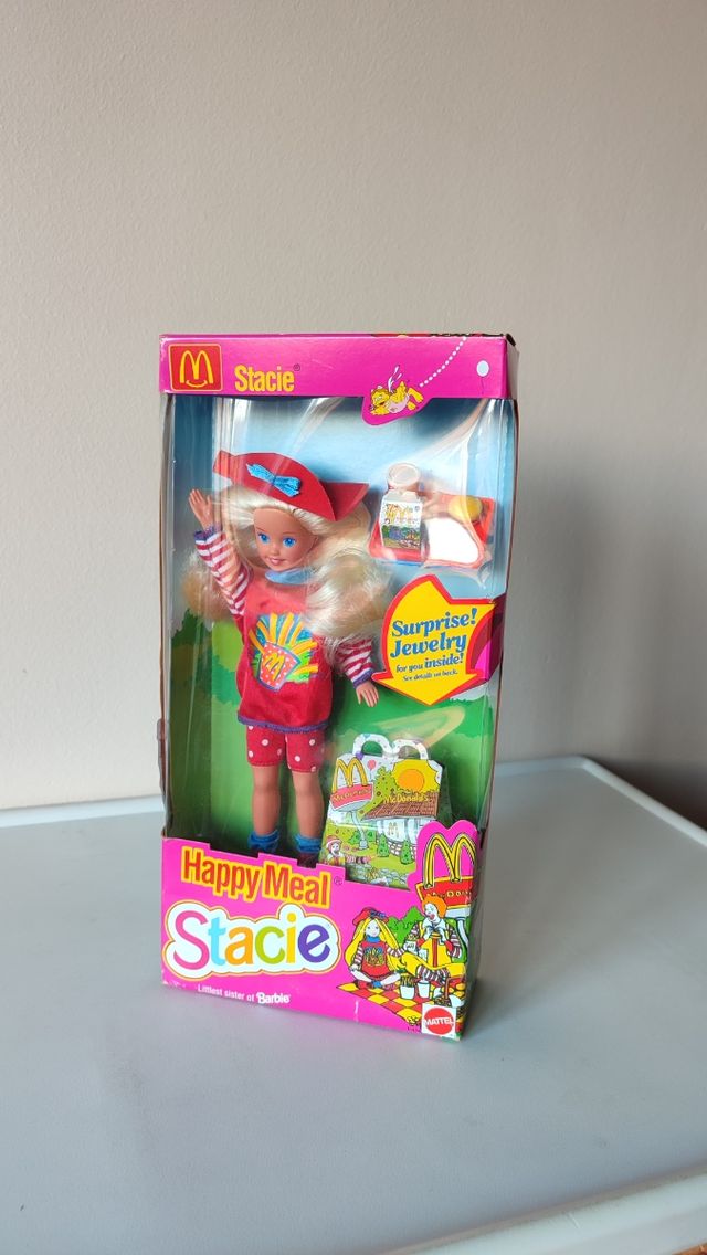 Detalles del productoBarbie Stacie Happy meal 1993 McDonald. Nueva, nunca se ha sacado de la caja. Caja con signos de desgaste, ver fotos.