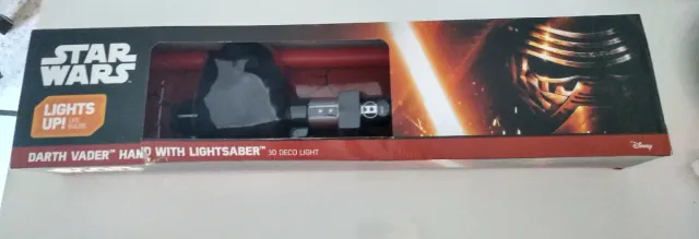 Detalles del productoLámpara decorativa de Star Wars con la mano de Darth Vader y su sable de luz.