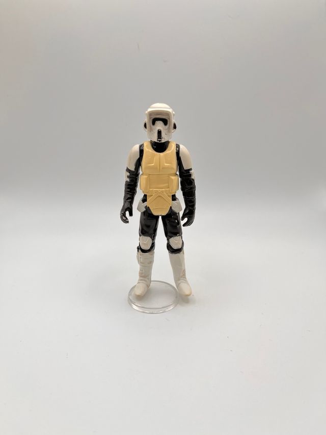Figura de acción vintage de Star Wars. - Diseño detallado del Scout Trooper. - Colores blanco, negro y beige.