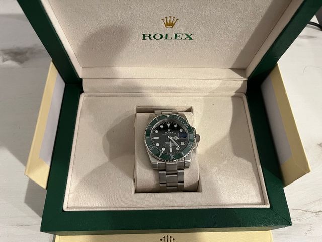 Reloj de pulsera con caja y brazalete de acero inoxidable. El bisel giratorio unidireccional es de cerámica verde. - Esfera negra. - Ventana de fecha. - Resistente al agua.