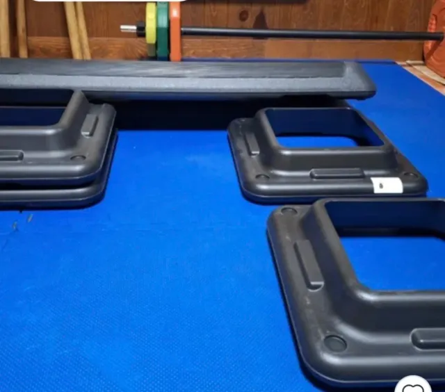 Plataforma de step fitness con altura ajustable. Ideal para entrenamientos cardiovasculares y de fuerza. - Plataforma principal. - Elevadores para ajustar la altura.