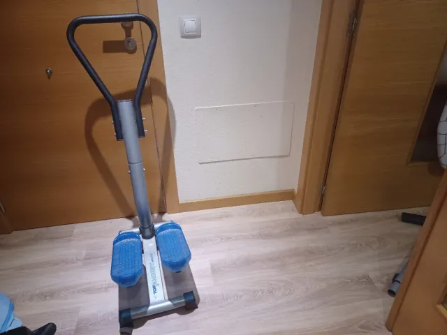 Máquina de ejercicio tipo step con pedales. - Estructura metálica. - Pedales de color azul.