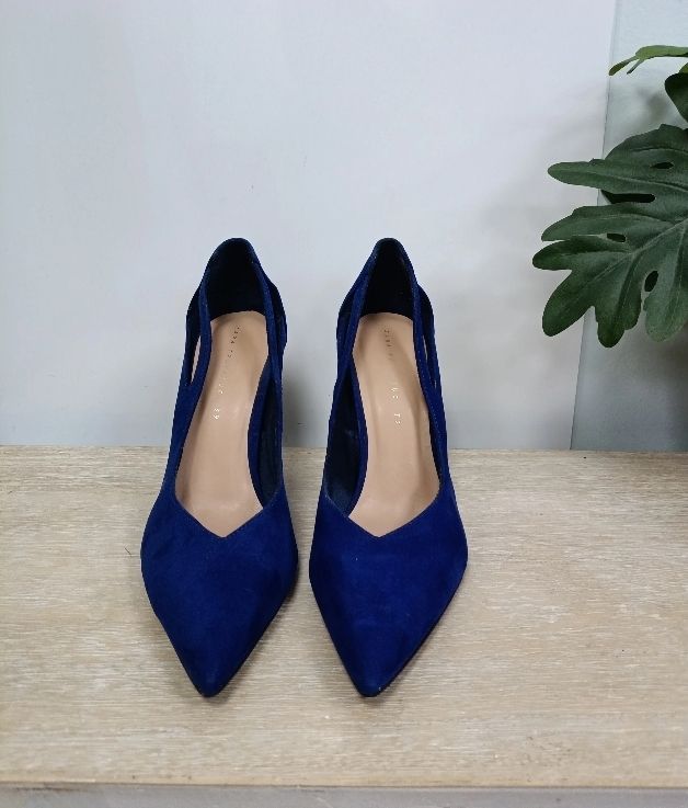 Zapatos de antelina azul estilo stilettos. Tacón 10cm