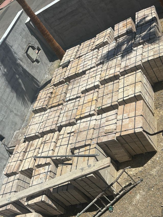 Stock de losas de travertino en formato 30x30 de 2cm de grosor a poro abierto.Disponemos de 900m2 colocadas y flejadas en palet de 20m2/palet. Solo se vende stock completo.