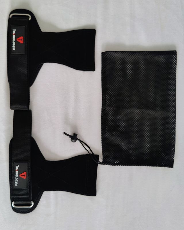 Detalles del productoStraps tipo callera de la marca Trainologym. Con un acabado de piel que cubre toda la mano protegen mejor de callos y rozaduras que los straps clásicos. Incluyen bolsa de malla para guardarlos.