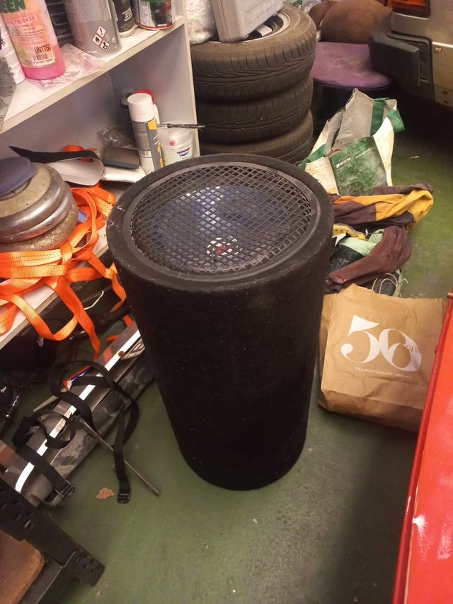 Subwoofer de 12 pulgadas. - Diseño cilíndrico. - Rejilla protectora.
