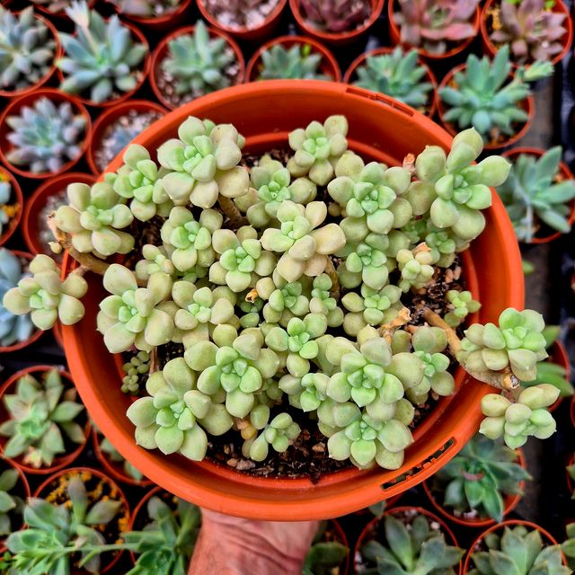 Detalles del productoGraptopetalum Mendozae en tamaño adulto. en maceta de 17. Planta tal cual se muestra en la foto. Se envía a raíz desnuda, sin maceta, lista para plantar en tu sustrato.
