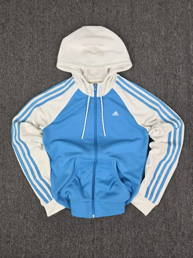 Color azul pastel con las clásicas 3 stripes negras en mangas y logo bordado en pecho.
