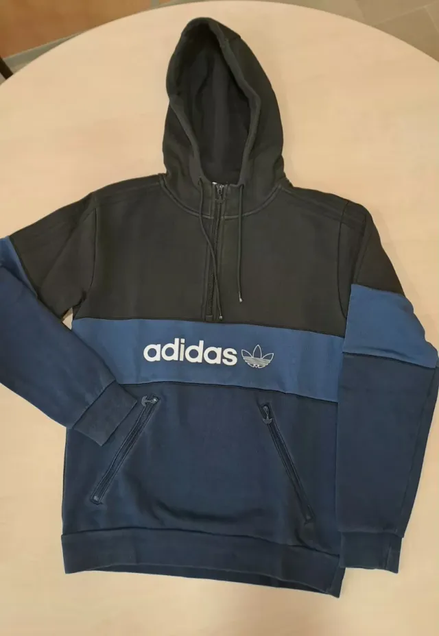 Sudadera Adidas Negra y Azul Media Cremallera