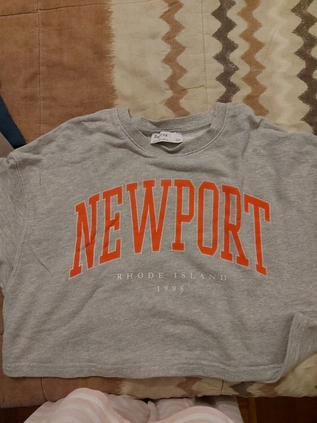 Sudadera Bershka Newport Rhode Island Gris Talla X