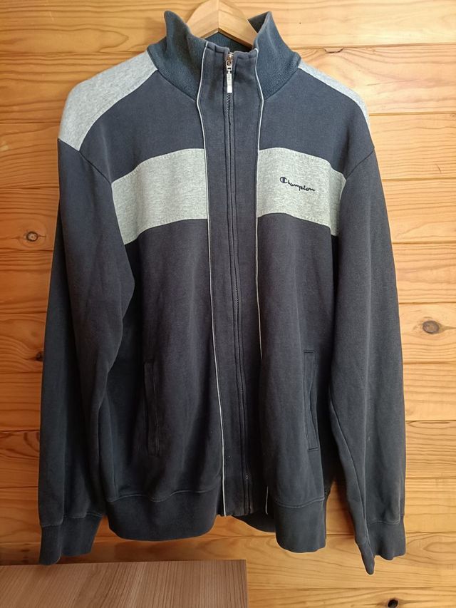 Sudadera Champion Color Azul y Gris Talla XL.
