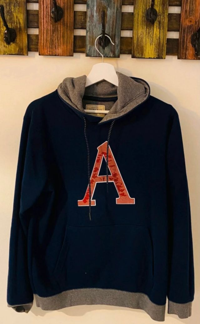 Sudadera de manga larga con capucha en colores azul marino, gris y rojo. Sudadera talla M, modelo Regular Fit. Solo se realizan envíos 📦.