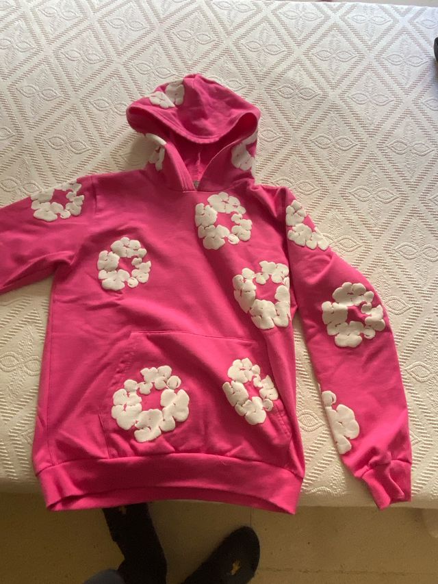 Sudadera Denim Tears Rosa con Detalles Blancos