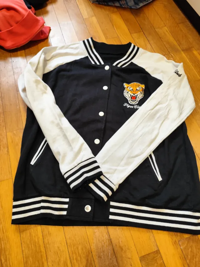 Sudadera estilo universitario negra y blanca