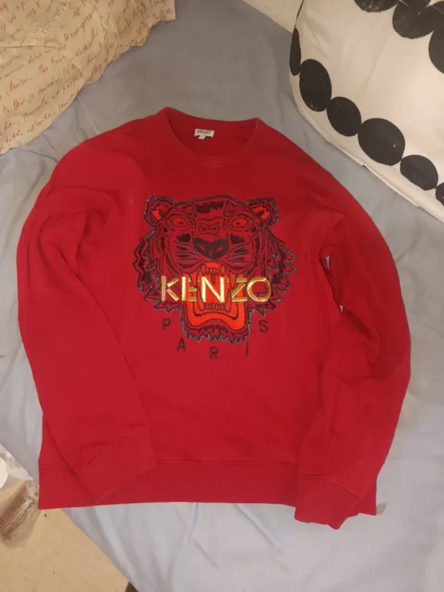 Sudadera Kenzo de color rojo con el icónico diseño del tigre bordado.