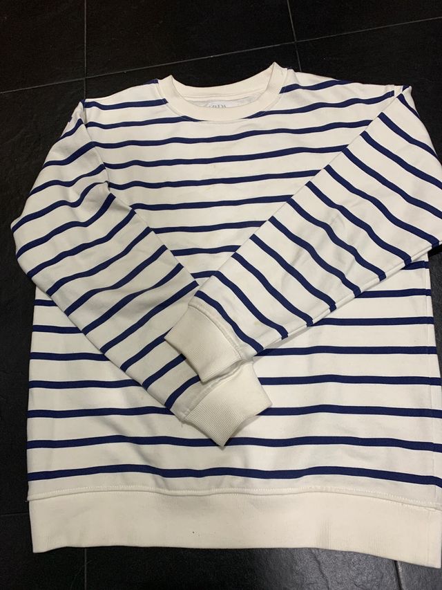 Sudadera marinera blanca de algodón de cuello redondo con rayas azul marino Comprada en Zara. Talla 11-12