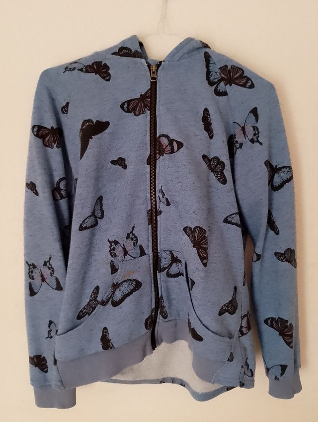 Sudadera mariposas azul con cremallera y capucha