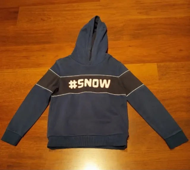 Sudadera azul para niño con capucha y el lema #SNOW estampado. - Diseño con franjas en contraste. - Puños y bajo elásticos.