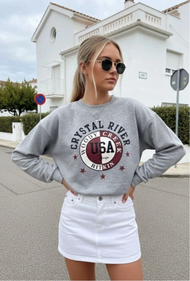 Sudadera Pull&Bear gris con estampado USA