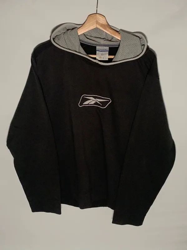 Sudadera Reebok vintage, hoodie retro Y2K negro