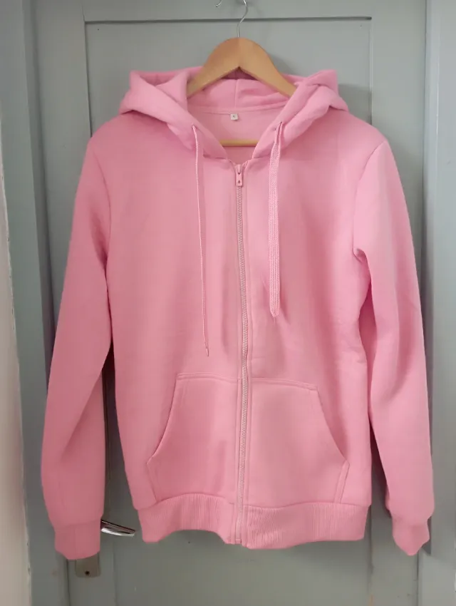 Sudadera rosa con capucha y cremallera