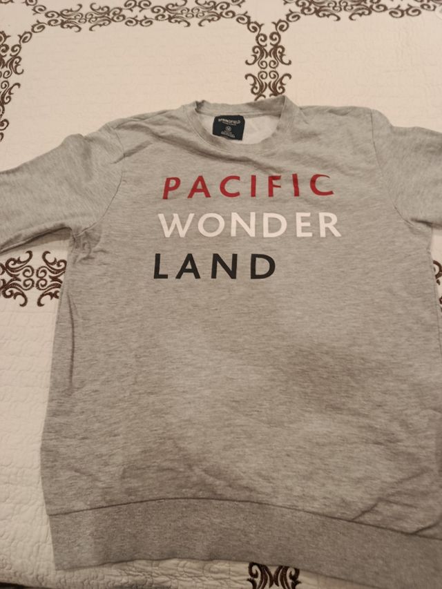 Sudadera Springfield Gris Letras Pacific Wonder La