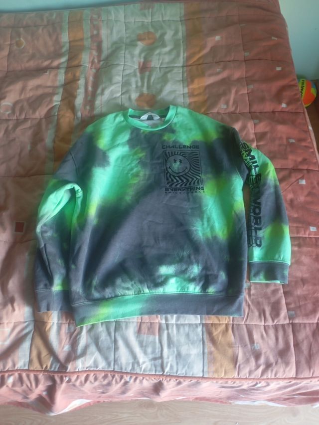 Sudadera Tie-Dye Verde y Gris. 14 años.