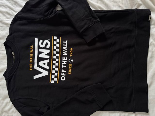 Sudadera negra de Vans para niño. - Logo de Vans Off The Wall en blanco y amarillo. - Diseño Since 1966.