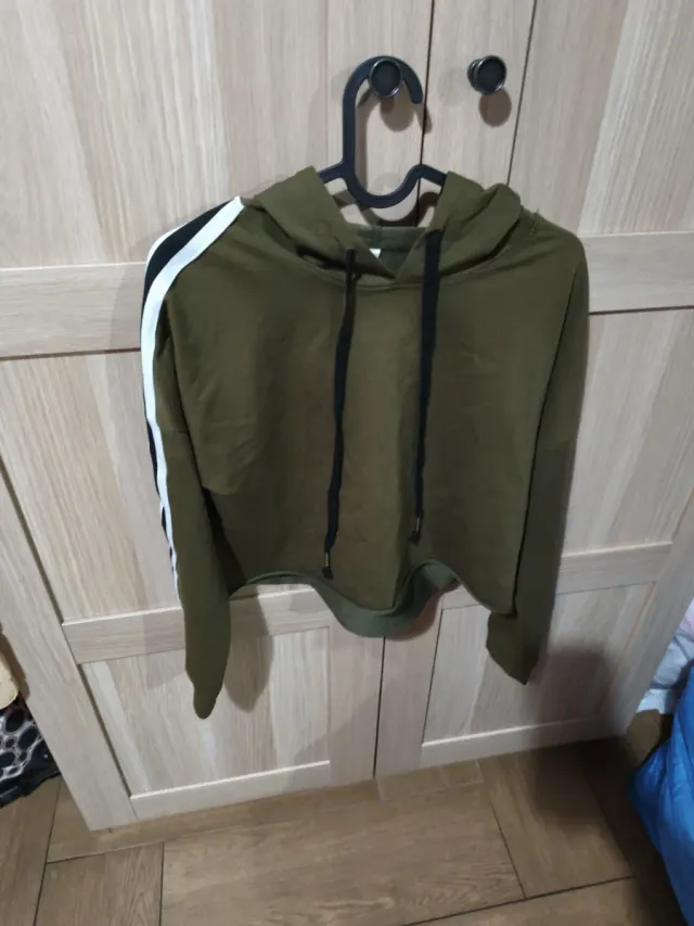 Sudadera verde con rayas blancas